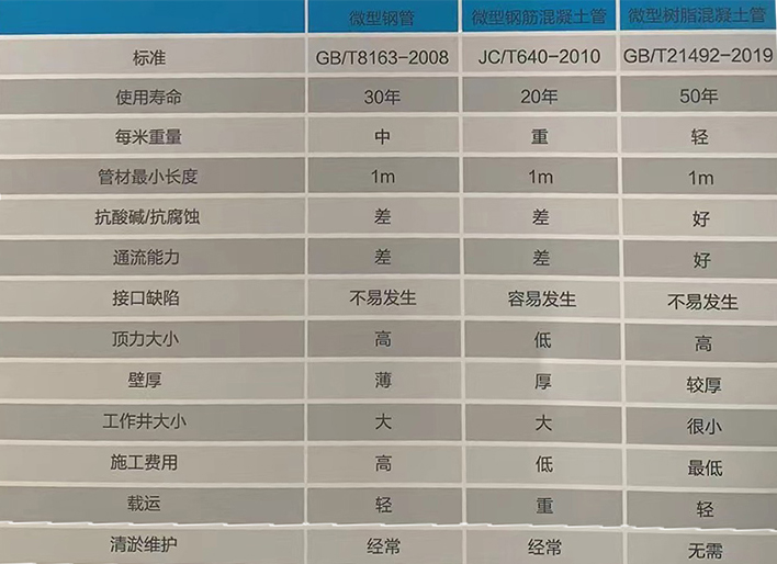 》》》樹脂混凝土微型頂管與其他管材性能比較